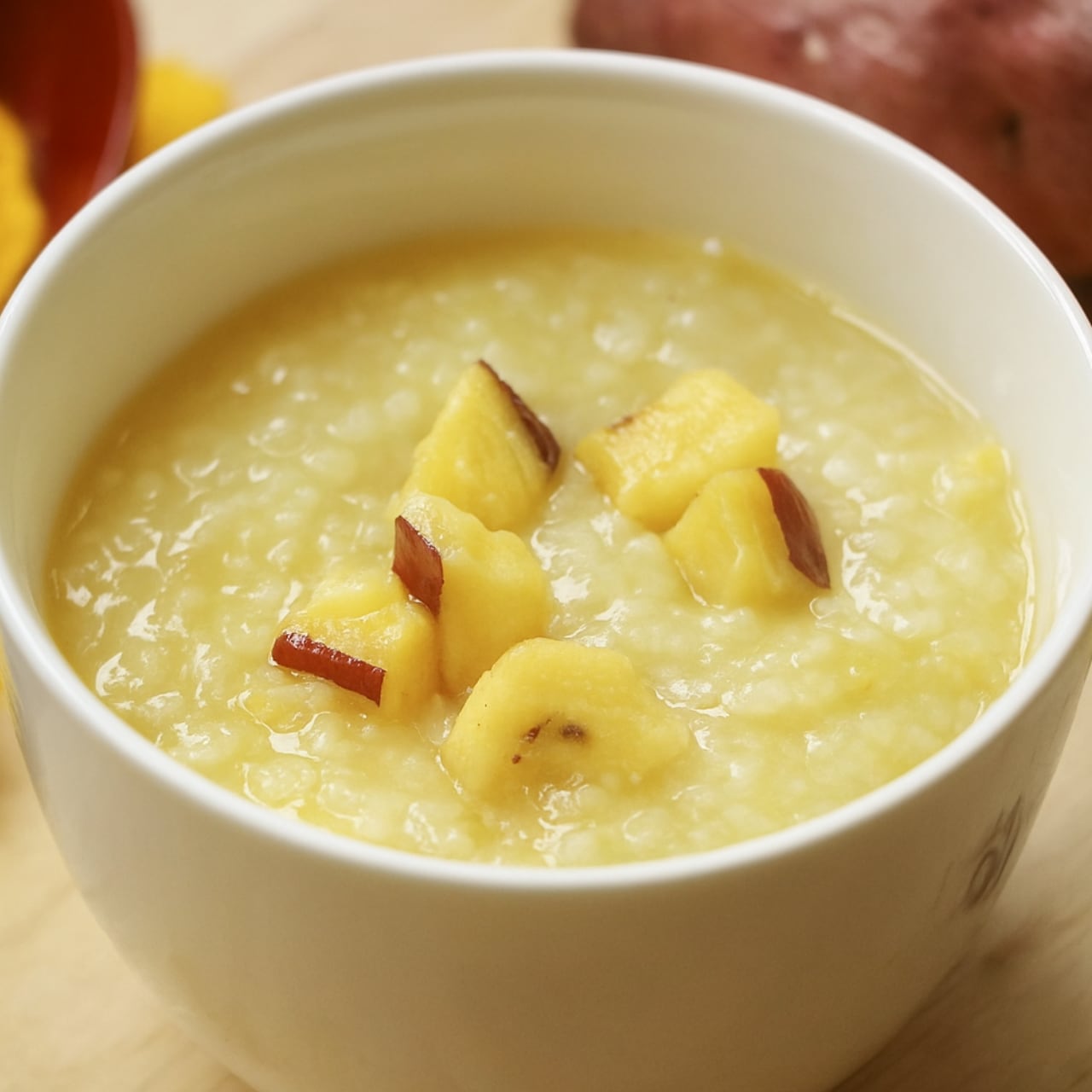 そのやさしい効能を活かし、消化にやさしく、ほんのりさつまいもの自然な甘さも感じ、ほっと心がゆるむ味わいに仕上げています。